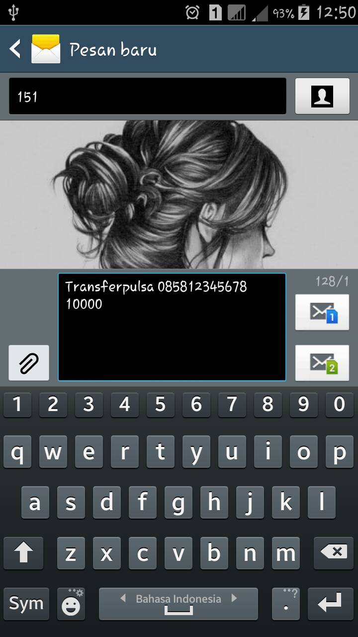 Dengan menggunakan menu sms yang ada pada smartphone kita sudah bisa melakukan transaksi transfer pulsa ini. Caranya: